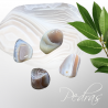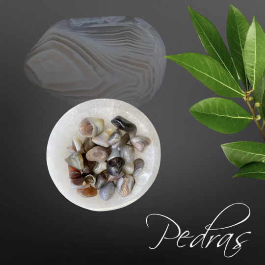 Ágata BotswanaEm um nível mental. As cores vibrantes da ágata de Botswana ampliam o clima criativo para ajudá-lo a se conectar com ideias artísticas. Com seus padrões em forma de listras, esta pedra também o ajuda a reconhecer padrões em sua vida e em você mesmo. É útil para se tornar ciente dos padrões repetitivos e para esclarecer as mudanças que você deve escolher fazer. Quando você está no processo de transformar sua realidade, uma das primeiras tarefas é usar a ferramenta de auto-observação. Esta ferramenta dá a você a habilidade de observar quando você está preso em uma rotina ou em sistemas de crenças limitados.Em um nível emocional. Ágata de Botswana pode ajudá-lo a se envolver com suas emoções turbilhantes usando o pensamento abstrato. Uma vez que oferece a capacidade de ver as coisas de forma criativa, fornece dados objetivos. Torna mais fácil ver suas emoções de muitos ângulos diferentes, removendo assim o forte apego a essas emoções. Use esta pedra para expressar suas emoções de forma artística.No nível físico. Ágata de Botswana é excelente em melhorar o tom da pele, a textura e a produção de colágeno. Independentemente da cor da pedra, a energia subjacente a todas as ágatas está se estabilizando. Quando você combina a alta energia criativa encontrada nesta pedra com a energia de ancoragem, obtém ajuda adicional na manifestação da ação consciente para atingir suas intenções. É uma pedra destinada a artistas e inventores.