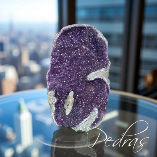 Bela Ametista do UruguayUma ametista linda para dar um toque especial na sua casa ou escritório! Essa ametista tem uma cristalização incrível e uma forma única que vai chamar a atenção de todos.No nível mental. A vibração roxa da ametista é dotada de poderosas qualidades transformadoras. Para usar essa vibração com o propósito de transformar situações indesejadas, imagine que você está cercado por uma bolha vibrante e brilhante de luz roxa que emana da pedra. Enquanto você imagina, saiba que tudo o que o perturba ou lhe causa problemas está sendo transformado e transmutado em algo poderoso. Imagine a situação mudando para o que você deseja de onde está agora. A vibração da sua imaginação, dependendo do que você deseja que a sua vida combine com a luz roxa, afetará as mudanças.No nível emocional. Quando você percebe que suas emoções precisam ser transformadas ou drasticamente alteradas, a energia violeta da ametista lhe dá a força e os recursos para efetuar a mudança. Imagine estar cercado pela energia roxa desta pedra enquanto se concentra em como gostaria de se sentir.No nível físico. Como a ametista deriva seu nome da palavra grega amethystos, que significa “não bêbado” ou “não embriagado”, carregue ou use esta pedra para lembrar de evitar distrações prejudiciais e mudar hábitos antigos. intenção consciente. A associação com a embriaguez é inspirada em um mito romano que envolve Baco, o deus romano do vinho e da embriaguez. Cada vez que você toca a pedra ou olha para ela, imagine sua nova realidade como se esse velho hábito fosse uma memória distante. Como seria sua vida sem esse hábito? Aproveite o tempo para imaginar.