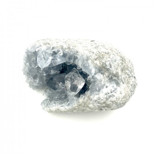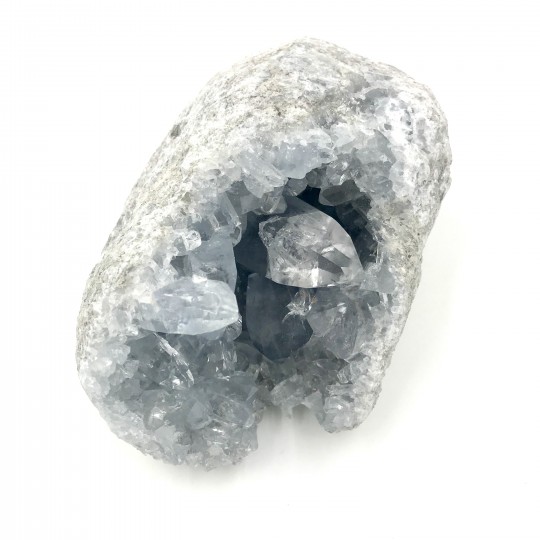 Pedras brutas CelestinaEm um nível mental. Celestina pode participar ativamente com a intenção de acalmar a tagarelice incessante da mente. Proporcionando uma sensação de serenidade, esta pedra é benéfica para aqueles momentos em que muita coisa está acontecendo ao mesmo tempo e você precisa recuperar o foco mental. Uma pedra atraente, é uma ótima ideia mantê-la sobre sua mesa de trabalho para evitar a sobrecarga de papéis e coisas do gênero.Em um nível emocional. Celestina acalma emoções turbulentas. Em tempos de turbulência emocional, a vibração azul pastel infunde uma sensação de paz e conforto. Esta pedra pode ajudá-lo a se consolar quando a dor o oprime e o lembra de se conectar com a Mãe Divina que o embala em seus braços enquanto você libera suas emoções, seus sentimentos e talvez suas lágrimas para aliviar sua dor.No nível físico. Celestina ajuda você a estar verdadeiramente presente em seu corpo enquanto se conecta ao mundo espiritual. Use esta pedra para ajudá-lo a se sincronizar com o reino maior. Se você se encontra em um negócio visionário como uma butique New Age, um praticante metafísico, um artista visionário ou qualquer outro negócio espiritual, mantenha esta pedra por perto. Também é útil se você dirige uma empresa consciente, comprometida com a integração da espiritualidade e da ética nas práticas de negócios. Isso o ajuda a ser sempre próspero enquanto presta serviço consciente ou espiritual.