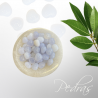 CalcedoniaEm um nível mental. O azul pastel desta calcedonia evoca a energia calmante de um lago tranquilo. Use esta pedra para ajudar a apagar a tagarelice incessante de sua mente. Respire fundo e relaxe. A vibração calmante desta pedra retarda o diálogo interno, ajuda a classificar as muitas imagens mentais e conversas internas.Em um nível emocional. A calcedonia azul alivia a hostilidade e a irritabilidade. Promove sentimentos de bondade e compaixão. Assim como o suave bater na costa do calmo oceano azul promove equilíbrio e cura, esta pedra equilibra suas emoções quando usada com orientação consciente. Com esta pedra em mãos, defina sua intenção de realinhar suas emoções e resolver todos esses sentimentos perturbadores.No nível físico. A calcedonia azul é útil para curar problemas associados à garganta, pescoço ou cabeça. Use esta pedra para dor de cabeça, garganta inflamada ou dor de ouvido. Esta pedra é benéfica para acalmar problemas de inflamação e sinusite.
