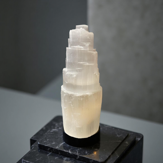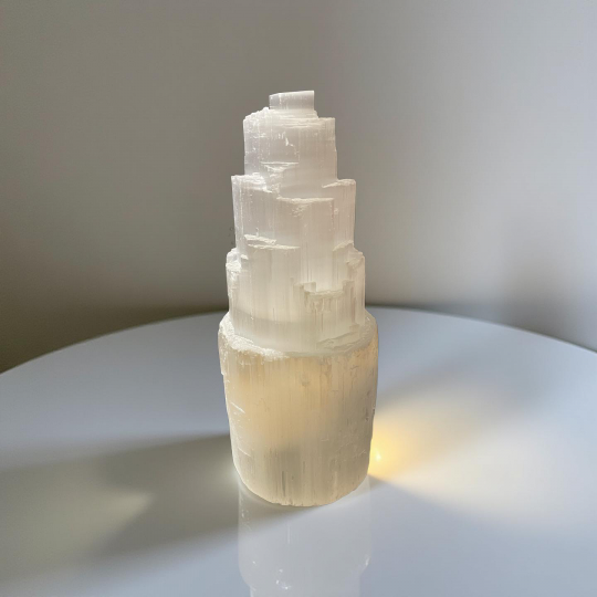 Luminária de Selenita com cabo elêtricoEm um nível mental. A Selenita fornece clareza mental e ajuda você a permanecer no curso. É uma pedra estabilizadora que mantém seus pensamentos focados em sua intenção. Com esta pedra em mãos, permita que sua natureza intuitiva se funda com sua inteligência, mesclando conhecimento com sabedoria espiritual.Em um nível emocional. A Selenita é um lembrete de que você está espiritual, fisicamente e mentalmente alinhado. É fácil manter suas emoções em equilíbrio. Esta pedra ajuda você a se desligar do drama, permitindo que você compreenda melhor as pessoas e as situações. Use esta pedra como uma varinha mágica de amor, luz e bondade para ajudar a dissipar quaisquer sentimentos de inferioridade, ciúme, dúvida, medo ou qualquer tipo de negatividade.No nível físico. A Selenita é ótimo para massoterapeutas, quiropráticos e terapeutas – eles podem usá-lo para ampliar os benefícios de seu tratamento. Essa pedra também auxilia no cuidado de músculos, ossos, nervos e tendões, ajudando a fortalecer sua estrutura física básica. As qualidades protetoras do selenito e sua capacidade de alinhá-lo apenas para o bem de todos os envolvidos ajudam a manter as vibrações amorosas quando colocado na entrada de sua casa (por dentro e por fora).