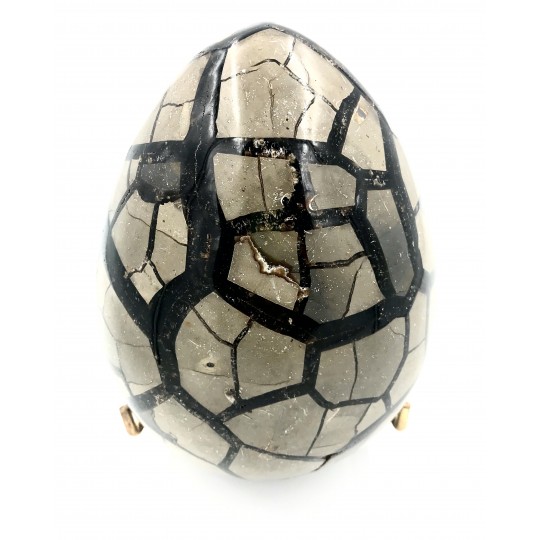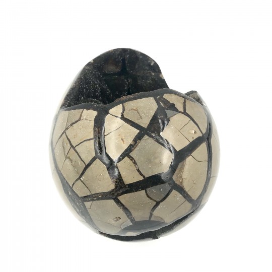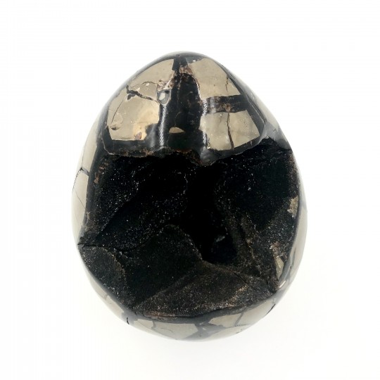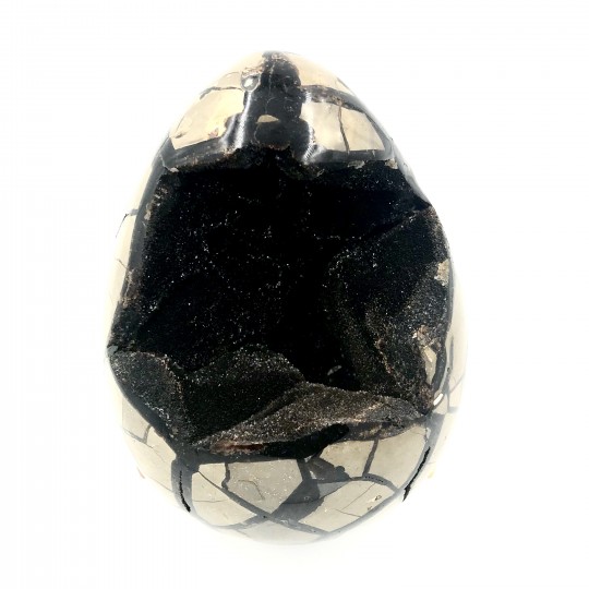 Excelente ovo gigante de Septaria com seu lado preto bruto.Em um nível mental. A energia da calcita amarela da Septaria ajuda a descobrir e limpar sistemas de crenças desatualizados ligados a velhas memórias e outras formas de pensamento ou energia mental que se acumularam em sua mente com o tempo. Com esta pedra em mãos, você pode começar a reduzir os efeitos indesejados em seu comportamento e na maneira como responde aos eventos da vida.Em um nível emocional. Septaria o ajuda a descobrir e liberar as emoções que borbulham sob a superfície, para que você possa continuar a se curar emocionalmente e quebrar padrões repetitivos indesejáveis em seus relacionamentos. Use esta pedra para ampliar os benefícios do registro no diário ou do trabalho interno para curar-se de feridas emocionais. Essa pedra também ajuda a aumentar sua auto-estima.No nível físico. A combinação potente de aragonita marrom e septária da calcita amarela é benéfica no apoio ao processo de cicatrização de fraturas e músculos tensos. Com esta pedra em mãos, visualize a soldagem de seus ossos ou o relaxamento de seus músculos e mantenha o foco em funcionar seu corpo como ele foi projetado. É uma pedra que funciona bem para conselheiros de saúde mental, fisioterapeutas e médicos ortopédicos.