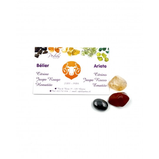 Ficha Informativa Tipo de pedra: Citrino Tipo de pedra: Hematita Tipo de pedra: Jaspe Diâmetro das pedras: 1 à 2 cm Signo(s): Áries Chakra(s): 1 – Raiz Planeta(s): Marte Elemento(s): Fogo
